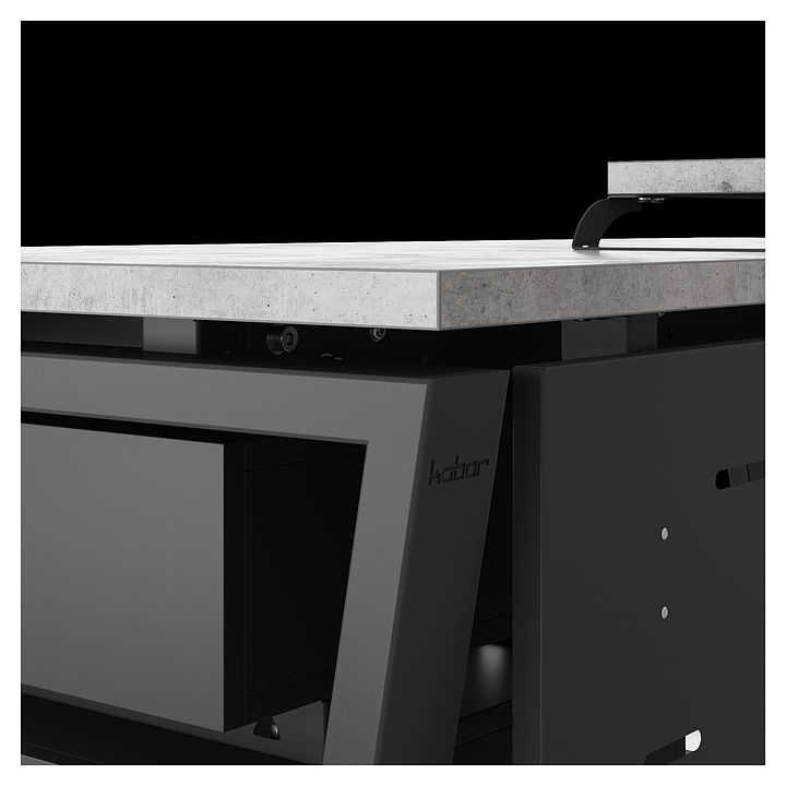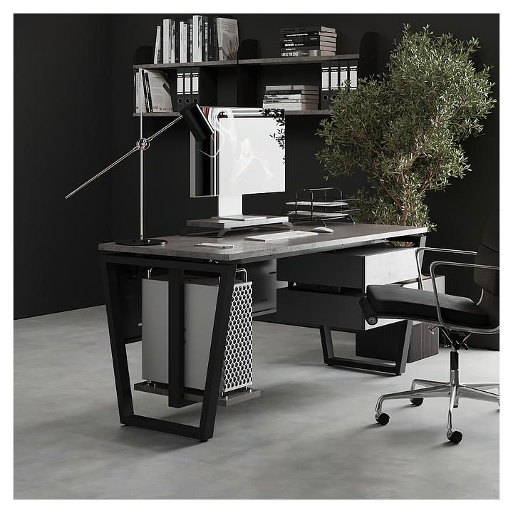 Компьютерный стол Кобор KOTR-180/70 black/chicago используется в офисных помещениях и кабинетах руководителей. Модель оснащена опорами в форме обратной трапеции. Каркас выполнен из металла, выкрашенного в цвет черный муар (RAL9005), столешница – из ламинированной древесно-стружечной плиты (ЛДСП) цвета бетон чикаго (F186 ST9). Опции (заказываются отдельно):