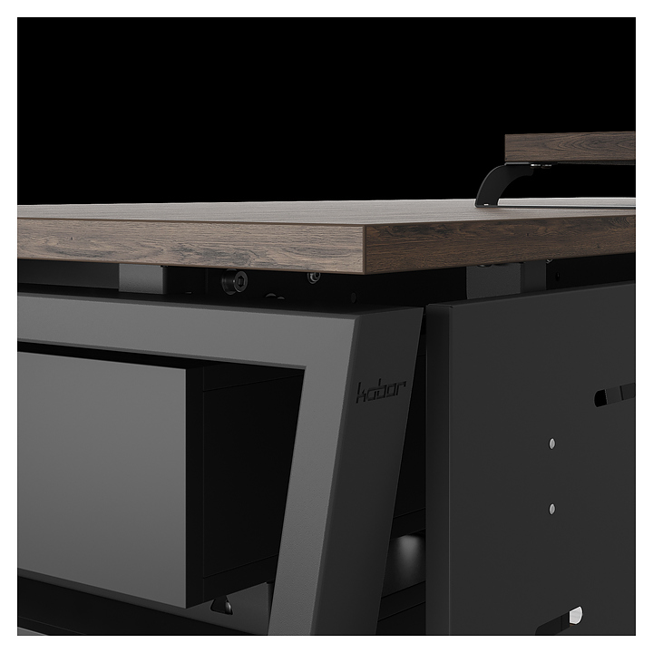 Компьютерный стол Кобор KOTR-180/60 black/charlston используется в офисных помещениях и кабинетах руководителей. Модель оснащена опорами в форме обратной трапеции. Каркас выполнен из металла, выкрашенного в цвет черный муар (RAL9005), столешница – из ламинированной древесно-стружечной плиты (ЛДСП) цвета дуб чарльстон (H3154 ST36). Опции (заказываются отдельно):