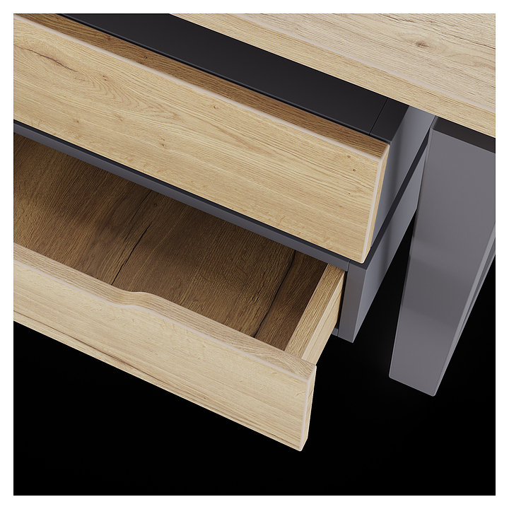 Компьютерный стол Кобор KOTR-160/60 graphite/natural используется в офисных помещениях и кабинетах руководителей. Модель оснащена опорами в форме обратной трапеции. Каркас выполнен из металла, выкрашенного в цвет графит муар (RAL7024), столешница – из ламинированной древесно-стружечной плиты (ЛДСП) цвета натуральный дуб (H1180 ST37). Опции (заказываются отдельно):