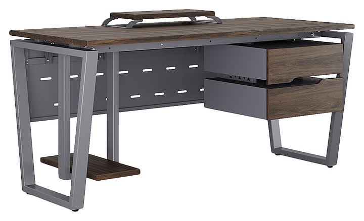 Компьютерный стол Кобор КOTR-160/60 graphite/charlston используется в офисных помещениях и кабинетах руководителей. Модель оснащена опорами в форме обратной трапеции. Каркас выполнен из металла, выкрашенного в цвет графит муар (RAL7024), столешница – из ламинированной древесно-стружечной плиты (ЛДСП) цвета дуб чарльстон (H3154 ST36). Опции (заказываются отдельно):