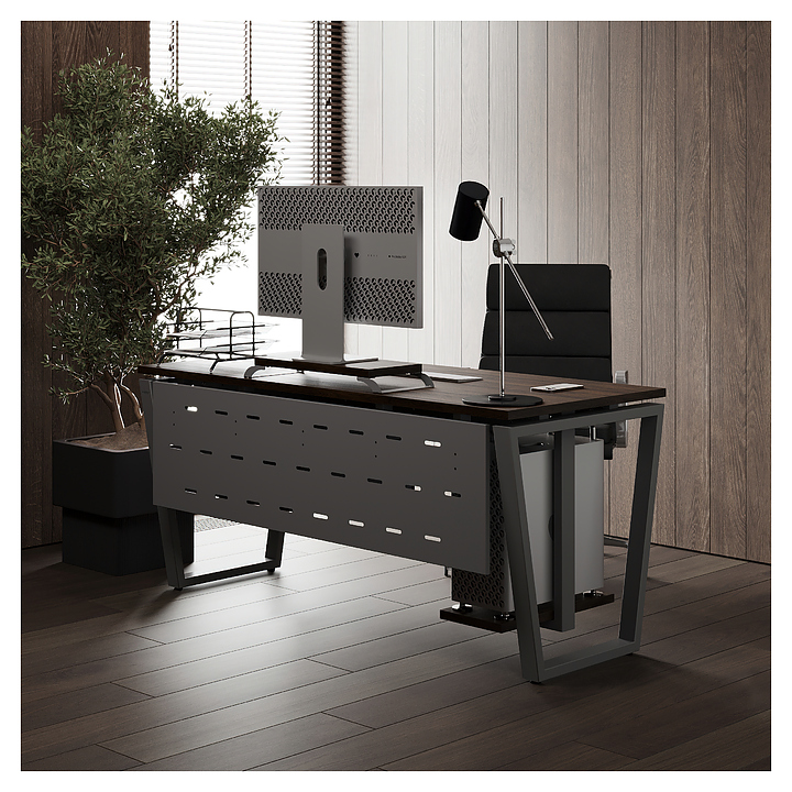 Компьютерный стол Кобор КOTR-120/70 aluminum/charlston используется в офисных помещениях и кабинетах руководителей. Модель оснащена опорами в форме обратной трапеции. Каркас выполнен из металла, выкрашенного в цвет алюминиевый металлик (RAL9006), столешница – из ламинированной древесно-стружечной плиты (ЛДСП) цвета дуб чарльстон (H3154 ST36). Опции (заказываются отдельно):