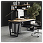Компьютерный стол Кобор KTB-100/60 graphite/natural используется в офисных помещениях и кабинетах руководителей. Модель оснащена опорами в форме обратной трапеции со скошенными верхними углами. Каркас выполнен из металла, выкрашенного в цвет графит муар (RAL7024), столешница – из ламинированной древесно-стружечной плиты (ЛДСП) цвета натуральный дуб (H1180 ST37). Опции (заказываются отдельно):