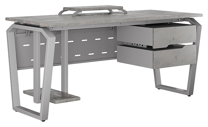Компьютерный стол Кобор КTB-180/70 aluminum/chicago используется в офисных помещениях и кабинетах руководителей. Модель оснащена опорами в форме обратной трапеции со скошенными верхними углами. Каркас выполнен из металла, выкрашенного в цвет алюминиевый металлик (RAL9006), столешница – из ламинированной древесно-стружечной плиты (ЛДСП) цвета бетон чикаго (F186 ST9). Опции (заказываются отдельно):