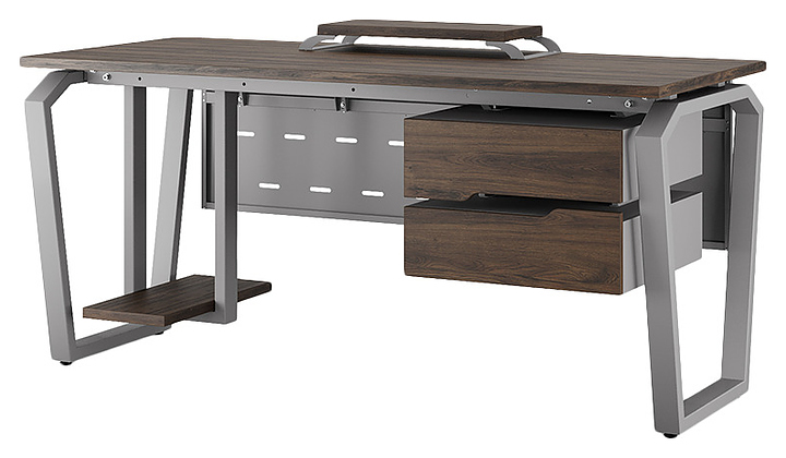 Компьютерный стол Кобор КTB-120/60 aluminum/charlston используется в офисных помещениях и кабинетах руководителей. Модель оснащена опорами в форме обратной трапеции со скошенными верхними углами. Каркас выполнен из металла, выкрашенного в цвет алюминиевый металлик (RAL9006), столешница – из ламинированной древесно-стружечной плиты (ЛДСП) цвета дуб чарльстон (H3154 ST36). Опции (заказываются отдельно):