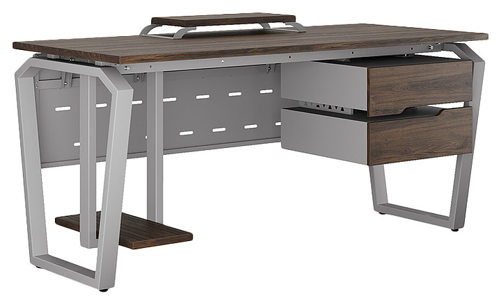 Компьютерный стол Кобор КTB-160/70 aluminum/charlston используется в офисных помещениях и кабинетах руководителей. Модель оснащена опорами в форме обратной трапеции со скошенными верхними углами. Каркас выполнен из металла, выкрашенного в цвет алюминиевый металлик (RAL9006), столешница – из ламинированной древесно-стружечной плиты (ЛДСП) цвета дуб чарльстон (H3154 ST36). Опции (заказываются отдельно):