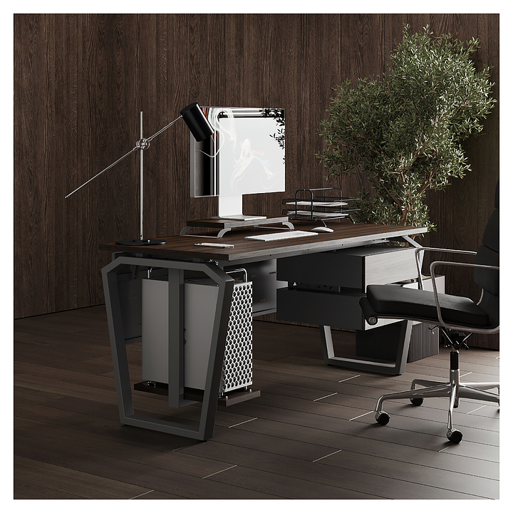 Компьютерный стол Кобор КTB-160/80 aluminum/charlston используется в офисных помещениях и кабинетах руководителей. Модель оснащена опорами в форме обратной трапеции со скошенными верхними углами. Каркас выполнен из металла, выкрашенного в цвет алюминиевый металлик (RAL9006), столешница – из ламинированной древесно-стружечной плиты (ЛДСП) цвета дуб чарльстон (H3154 ST36). Опции (заказываются отдельно):