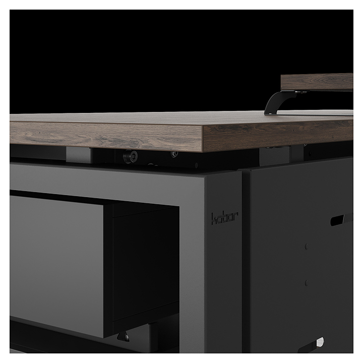 Компьютерный стол Кобор KTS1-160/80 black/charlston используется в офисных помещениях и кабинетах руководителей. Модель оснащена опорами в форме наклонной трапеции. Каркас выполнен из металла, выкрашенного в цвет черный муар (RAL9005), столешница – из ламинированной древесно-стружечной плиты (ЛДСП) цвета дуб чарльстон (H3154 ST36). Опции (заказываются отдельно):