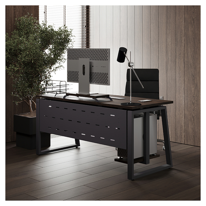 Компьютерный стол Кобор КTS1-120/80 graphite/charlston используется в офисных помещениях и кабинетах руководителей. Модель оснащена опорами в форме наклонной трапеции. Каркас выполнен из металла, выкрашенного в цвет графит муар (RAL7024), столешница – из ламинированной древесно-стружечной плиты (ЛДСП) цвета дуб чарльстон (H3154 ST36). Опции (заказываются отдельно):