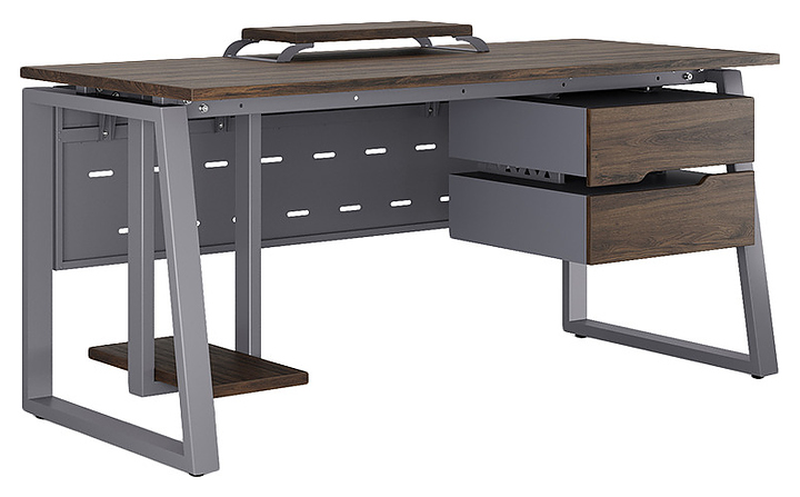 Компьютерный стол Кобор КTS1-140/80 graphite/charlston используется в офисных помещениях и кабинетах руководителей. Модель оснащена опорами в форме наклонной трапеции. Каркас выполнен из металла, выкрашенного в цвет графит муар (RAL7024), столешница – из ламинированной древесно-стружечной плиты (ЛДСП) цвета дуб чарльстон (H3154 ST36). Опции (заказываются отдельно):