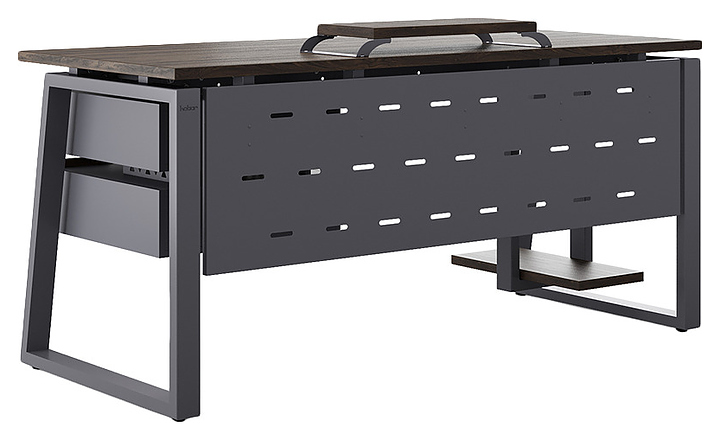 Компьютерный стол Кобор КTS1-180/80 graphite/charlston используется в офисных помещениях и кабинетах руководителей. Модель оснащена опорами в форме наклонной трапеции. Каркас выполнен из металла, выкрашенного в цвет графит муар (RAL7024), столешница – из ламинированной древесно-стружечной плиты (ЛДСП) цвета дуб чарльстон (H3154 ST36). Опции (заказываются отдельно):