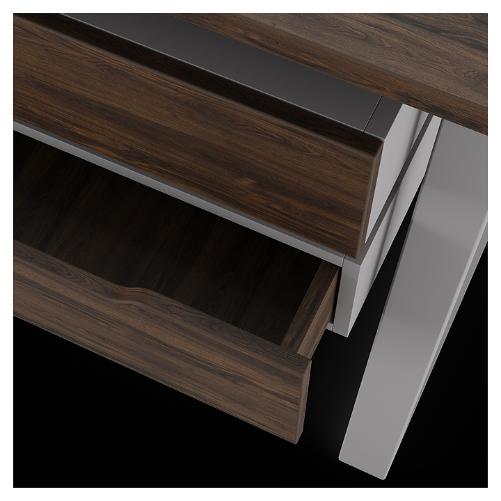 Компьютерный стол Кобор KTS1-180/70 aluminum/charlston используется в офисных помещениях и кабинетах руководителей. Модель оснащена опорами в форме наклонной трапеции. Каркас выполнен из металла, выкрашенного в цвет алюминиевый металлик (RAL9006), столешница – из ламинированной древесно-стружечной плиты (ЛДСП) цвета дуб чарльстон (H3154 ST36). Опции (заказываются отдельно):