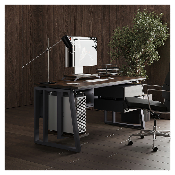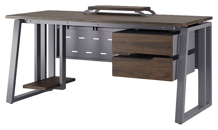 Компьютерный стол Кобор КTS2-140/70 graphite/charlston используется в офисных помещениях и кабинетах руководителей. Модель оснащена усиленными вертикальными балками опорами в форме наклонной трапеции. Каркас выполнен из металла, выкрашенного в цвет графит муар (RAL7024), столешница – из ламинированной древесно-стружечной плиты (ЛДСП) цвета дуб чарльстон (H3154 ST36). Опции (заказываются отдельно):