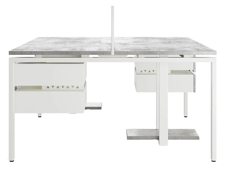 Офисный стол Кобор P/2-120/120 white/chicago используется в офисных помещениях и кабинетах руководителей. Модель оснащена П-образными опорами. Каркас выполнен из металла, выкрашенного в цвет белый муар (RAL9016), столешница – из ламинированной древесно-стружечной плиты (ЛДСП) цвета бетон чикаго (F186 ST9). Дополнительные характеристики: