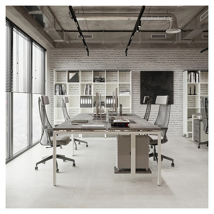 Офисный стол Кобор P/2-100/140 white/chicago используется в офисных помещениях и кабинетах руководителей. Модель оснащена П-образными опорами. Каркас выполнен из металла, выкрашенного в цвет белый муар (RAL9016), столешница – из ламинированной древесно-стружечной плиты (ЛДСП) цвета бетон чикаго (F186 ST9). Дополнительные характеристики: