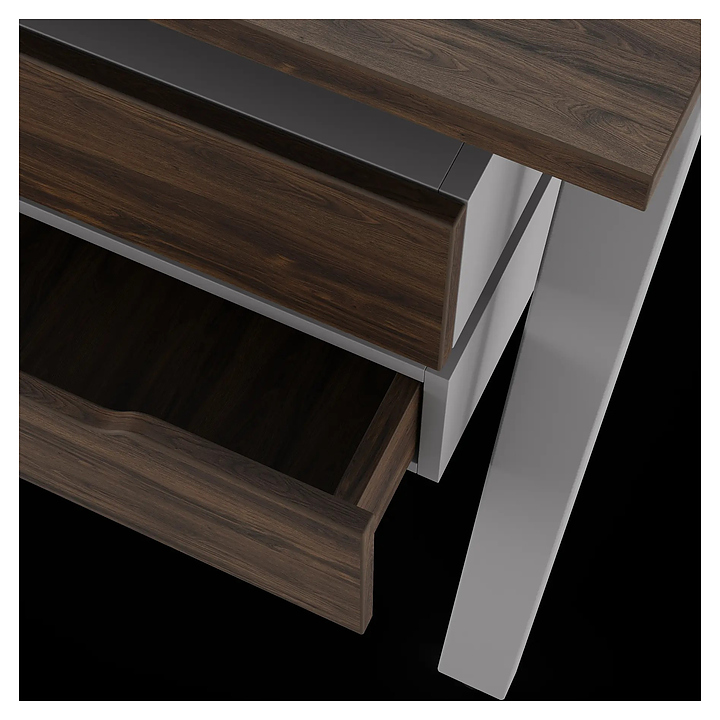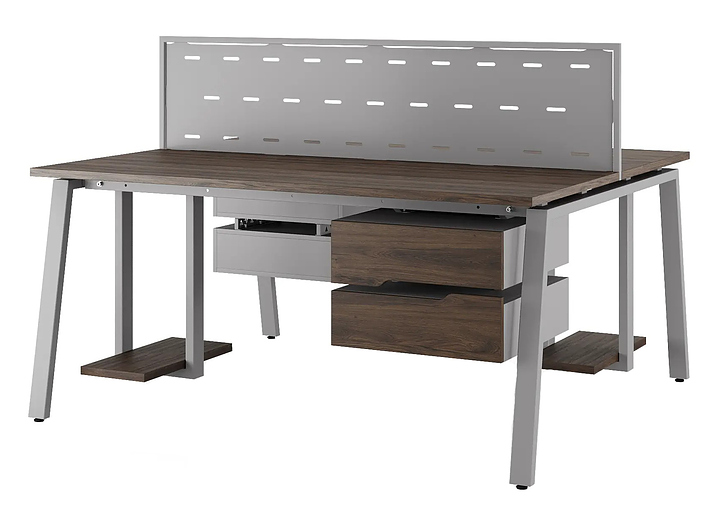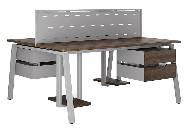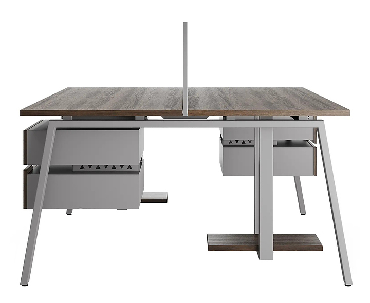 Офисный стол Кобор A/2-80/160 aluminum/charlston используется в офисных помещениях и кабинетах руководителей. Модель оснащена А-образными опорами. Каркас выполнен из металла, выкрашенного в цвет алюминиевый металлик (RAL9006), столешница – из ламинированной древесно-стружечной плиты (ЛДСП) цвета дуб чарльстон (H3154 ST36). Дополнительные характеристики: