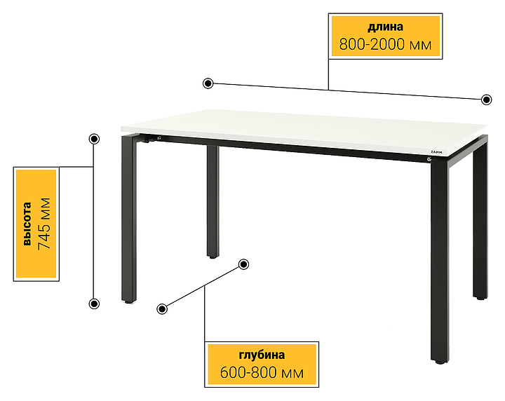 Прямой офисный стол ZAMM 60х30 серии Формат ТР используется для организации рабочего пространства в офисных помещениях. Коллекция отличается современным дизайном и сочетает в себе стиль и функциональность, создавая современное офисное пространство, стимулирующее продуктивность. Модель оснащена столешницей прямоугольной формы и П-образными опорами с подпятниками для компенсации неровностей пола. Каркас выполнен из холоднокатаной стали с покрытием черного цвета, столешница - из высококачественной ламинированной древесно-стружечной плиты (ЛДСП) с поверхностью белого цвета. Аксессуары в комплект поставки не входят и приобретаются дополнительно. Особенности: