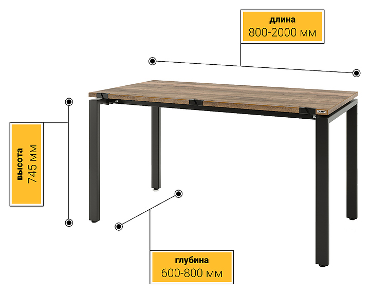 Стол офисный прямой ZAMM Формат 60х30 ТР 800х800 с пропусками, дуб галифакс олово/черный