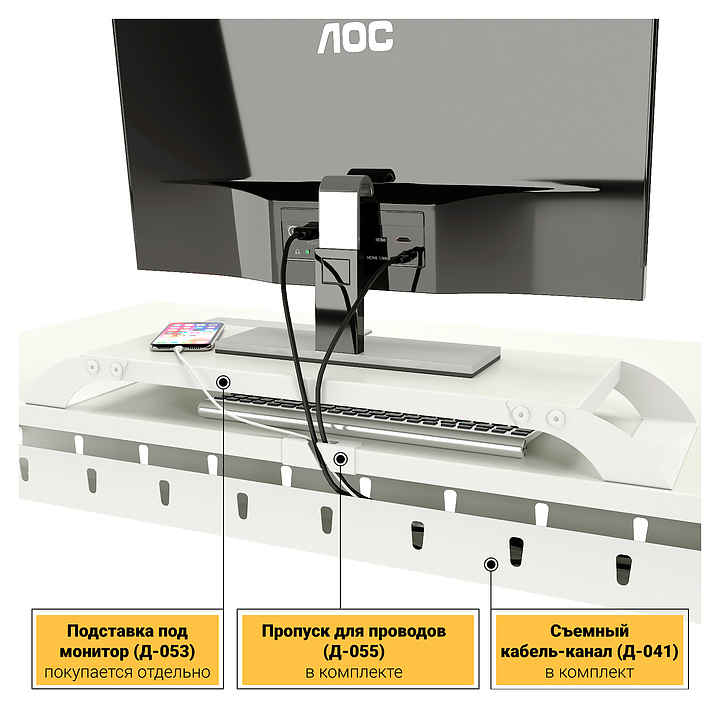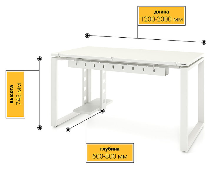 Стол офисный прямой ZAMM Зета 60х30 ТР 1800х700 с пропусками, кабель-каналом и подвесом системного блока, белый
