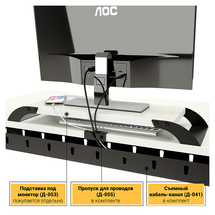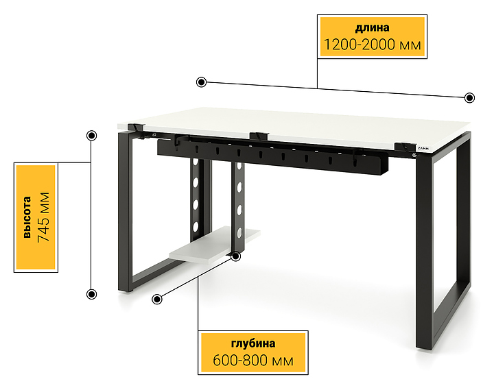 Стол офисный прямой ZAMM Зета 60х30 ТР 1800х700 с пропусками, кабель-каналом и подвесом системного блока, белый премиум/черный муар