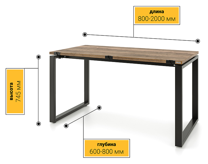 Стол офисный прямой ZAMM Зета 60х30 ТР 800х700 с пропусками, дуб галифакс олово /черный муар