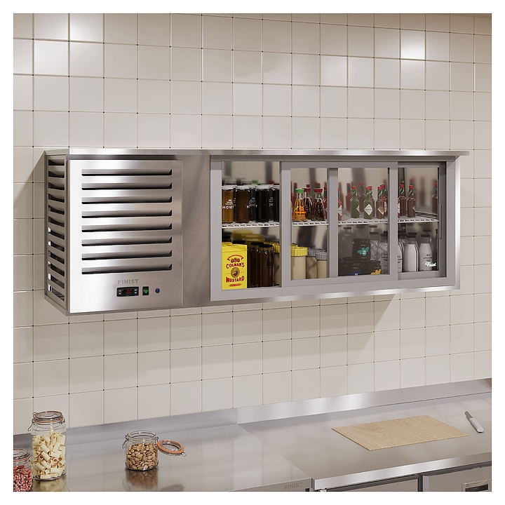 Настенная холодильная полка Finist НПХк-18 предназначена для кратковременного хранения пищевых продуктов и напитков на предприятиях общественного питания и торговли. Модель оснащена электрическим микропроцессорным блоком управления, функцией автоматической оттайки и светодиодной подсветкой. Полка экономит пространство кухни и бара благодаря подвесной конструкции. Цельнозаливной корпус выполнен из пищевой нержавеющей стали, двери-купе - из стеклопакета. Особенности: