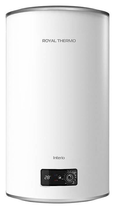 Электрический накопительный водонагреватель Royal Thermo RWH 30 Interio используется в местных системах водоснабжения для постоянного автономного обеспечения горячей водой одной или нескольких точек водоразбора таких как санитарные узлы, кухни в жилых и загородных частных домах, а также на других бытовых и хозяйственных объектах. Модель оснащена внутренним баком, погружным трубчатым электронагревателем (ТЭНом), кабелем питания с евровилкой, съемными крышками, расположенной на фасаде электромеханической панелью управления со светодиодным цифровым дисплеем с белой подсветкой индикации, расположенными на крышке резьбовыми патрубками для подвода холодной и выхода горячей воды. Корпус цилиндрической формы выполнен из пластика белого цвета, внутренний бак – из высококачественной нержавеющей стали марки AISI304 с высоким содержанием антикоррозионных легирующих элементов хрома и никеля, ТЭН – из меди, теплоизоляция – из пенополиуретана, крышки с серебристой поверхностью, панель управления черного цвета.