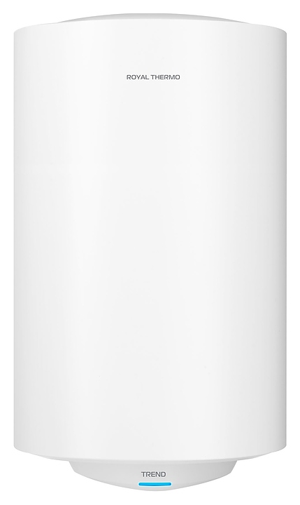 Электрический накопительный водонагреватель Royal Thermo RWH 80 Trend используется в местных системах водоснабжения для постоянного автономного обеспечения горячей водой одной или нескольких точек водоразбора таких как санитарные узлы, кухни в жилых и загородных частных домах, а также на других бытовых и хозяйственных объектах. Модель оснащена внутренним баком, погружным трубчатым электронагревателем (ТЭНом), кабелем питания с евровилкой, съемными крышками, расположенными на нижней крышке электромеханической панелью управления, резьбовыми патрубками для подвода холодной и выхода горячей воды. Корпус цилиндрической формы выполнен из стали с антикоррозийным покрытием белого цвета, крышки – из белого пластика, внутренний бак – из стали с высококачественным эмалированным покрытием, ТЭН – из меди, теплоизоляция – из пенополиуретана, переключатель белого цвета с серебристой окантовкой.