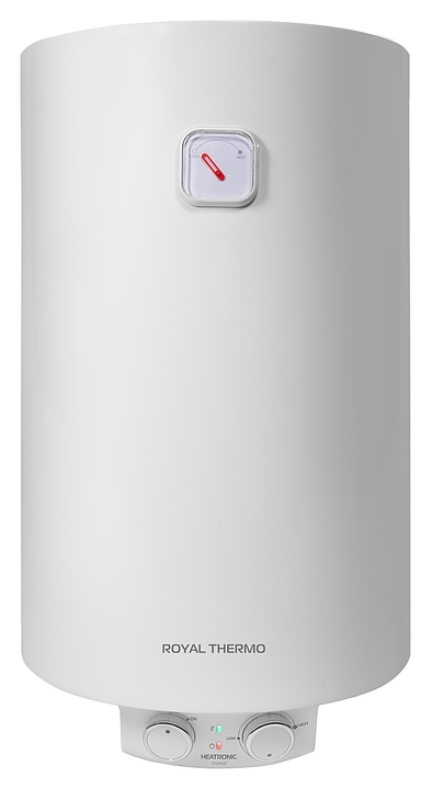 Электрический накопительный водонагреватель Royal Thermo RWH 30 Heatronic Slim DryHeat используется в местных системах водоснабжения для постоянного автономного обеспечения горячей водой одной или нескольких точек водоразбора таких как санитарные узлы, кухни в жилых и загородных частных домах, а также на других бытовых и хозяйственных объектах. Модель оснащена внутренним баком, кабелем питания с евровилкой, съемными крышками, расположенными на нижней крышке электромеханической панелью управления, резьбовыми патрубками для подвода холодной и выхода горячей воды. Корпус цилиндрической формы выполнен из стали с антикоррозийным покрытием белого цвета, крышки – из белого пластика, внутренний бак – из стали с высококачественным эмалированным покрытием, ТЭН – из стали, теплоизоляция – из пенополиуретана, переключатели белого цвета с серебристой окантовкой.