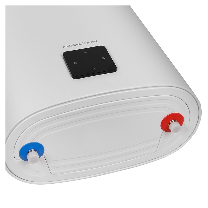 Электрический накопительный водонагреватель Royal Thermo RWH 100 Aqua Inox Inverter используется в местных системах водоснабжения для постоянного автономного обеспечения горячей водой одной или нескольких точек водоразбора таких как санитарные узлы, кухни в жилых и загородных частных домах, а также на других бытовых и хозяйственных объектах. Модель оснащена двухкомпонентным внутренним баком, кабелем питания с евровилкой, съемной крышкой, расположенной на фасаде электронной панелью управления с сенсорными функциональными клавишами и светодиодным цифровым дисплеем с белой подсветкой индикации, расположенными на крышке резьбовыми патрубками для подвода холодной и выхода горячей воды. Уплощенный корпус овального сечения выполнен из стали с антикоррозийным покрытием белого цвета, внутренний бак – из высококачественной нержавеющей стали марки AISI304 с высоким содержанием антикоррозионных легирующих элементов хрома и никеля, ТЭН – из стали, теплоизоляция – из пенополиуретана, панель управления черного цвета.