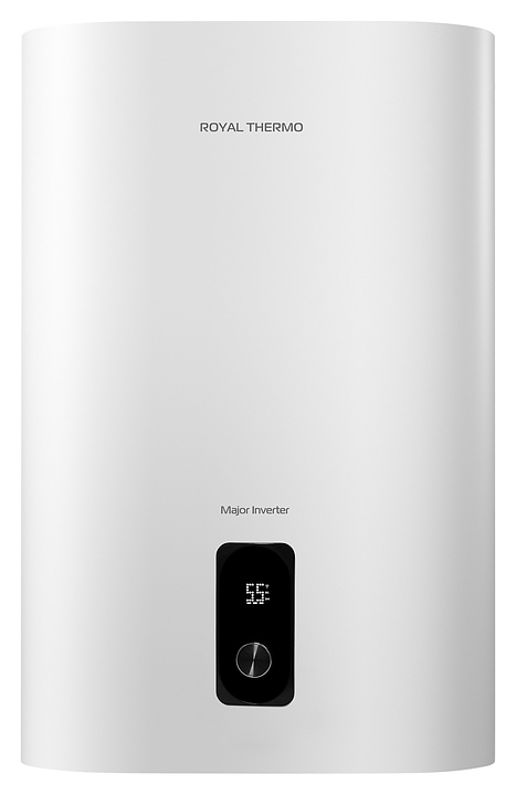 Электрический накопительный водонагреватель Royal Thermo RWH 30 Major Inverter используется в местных системах водоснабжения для постоянного автономного обеспечения горячей водой одной или нескольких точек водоразбора таких как санитарные узлы, кухни в жилых и загородных частных домах, а также на других бытовых и хозяйственных объектах. Модель оснащена двухкомпонентным внутренним баком, погружным трубчатым электронагревателем (ТЭНом), кабелем питания с евровилкой, съемной крышкой, расположенной на фасаде электромеханической панелью управления со светодиодным цифровым дисплеем, расположенными на крышке резьбовыми патрубками для подвода холодной и выхода горячей воды. Уплощенный корпус овального сечения выполнен из стали с антикоррозийным покрытием белого цвета, внутренний бак – из высококачественной нержавеющей стали марки AISI304 с высоким содержанием антикоррозионных легирующих элементов хрома и никеля, ТЭН – из нержавеющей стали, теплоизоляция – из пенополиуретана, панель управления черного цвета, переключатель с серебристой окантовкой.