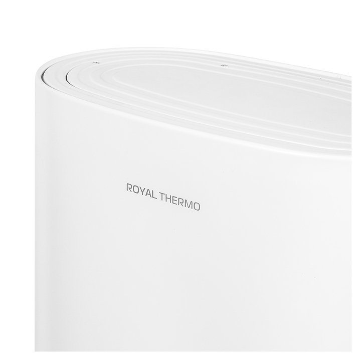 Электрический накопительный водонагреватель Royal Thermo RWH 80 Aqua Inverter используется в местных системах водоснабжения для постоянного автономного обеспечения горячей водой одной или нескольких точек водоразбора таких как санитарные узлы, кухни в жилых и загородных частных домах, а также на других бытовых и хозяйственных объектах. Модель оснащена двухкомпонентным внутренним баком, кабелем питания с евровилкой, съемной крышкой, расположенной на фасаде электронной панелью управления с сенсорными функциональными клавишами и светодиодным цифровым дисплеем с белой подсветкой индикации, расположенными на крышке резьбовыми патрубками для подвода холодной и выхода горячей воды. Уплощенный корпус овального сечения выполнен из стали с антикоррозийным покрытием белого цвета, внутренний бак – из стали с высококачественным эмалированным покрытием, ТЭН – из стали, теплоизоляция – из пенополиуретана, панель управления белого цвета.