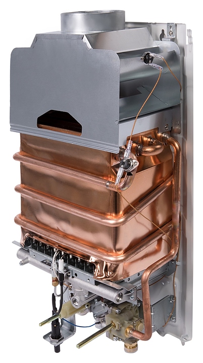 - Увеличенный газоводяной узел: высокая пропускная способность и сокращение длительности нагрева воды