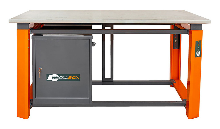 Верстак слесарный однотумбовый КМК ЗАВОД TOOLLBOX Premium ТВР 1800(ТВ0) используется для столярных, слесарных, ремонтных и сборочных работ. Предназначен для мастерских, гаражей и производственных помещений, где требуется надёжная рабочая поверхность без лишних элементов. Наличие одной тумбы позволяет размещать верстак в небольших помещениях или использовать пространство под столешницей для хранения крупных инструментов. Каркас верстака TOOLBOX включает в себя массивные опоры из 1,5 мм стали с возможностью установки регулируемых ножек и поперечины из стальной профильной трубы 40х40 мм. Столешница изготовлена из фанеры 30мм и закрыта стальным оцинкованным листом 1,2 мм, тумба из металла с порошковым покрытием. Поставка каркаса верстака, столешниц осуществляется в разобранном виде. Комплектация: