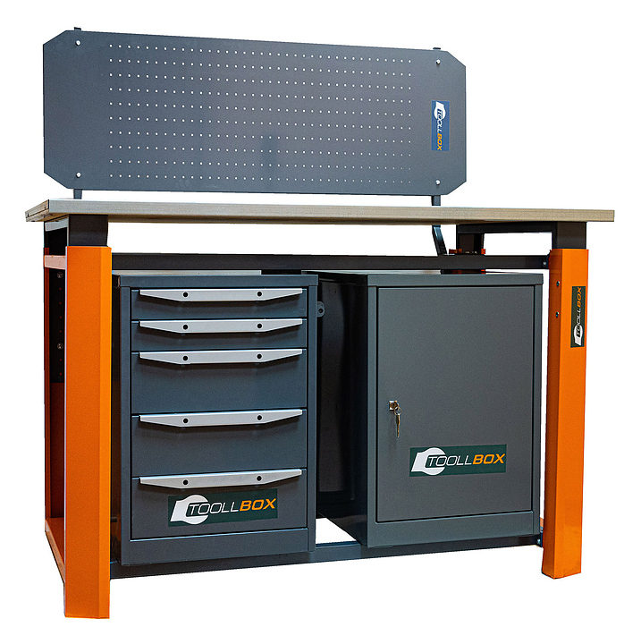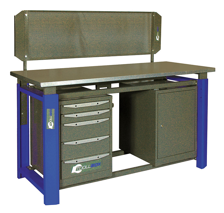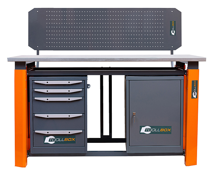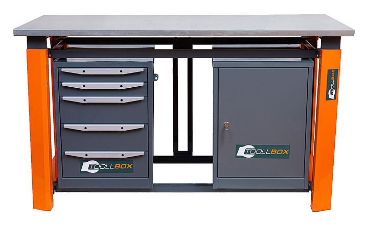 Верстак слесарный двухтумбовый КМК ЗАВОД TOOLLBOX Premium ТВР1800(ТВ0-ТВ5) используется для столярных, слесарных, ремонтных и сборочных работ. Предназначен для мастерских, гаражей и производственных помещений, где требуется надёжная рабочая поверхность без лишних элементов. Наличие двух тумб позволяет размещать верстак в небольших помещениях и использовать пространство под столешницей для хранения некрупных инструментов. Каркас верстака TOOLLBOX включает в себя массивные опоры из 1,5 мм стали с возможностью установки регулируемых ножек и поперечины из стальной профильной трубы 40х40 мм. Столешница изготовлена из фанеры 30мм и закрыта стальным оцинкованным листом 1,2 мм, тумбы из металла с порошковым покрытием. Поставка каркаса верстака, столешниц осуществляется в разобранном виде. Комплектация: