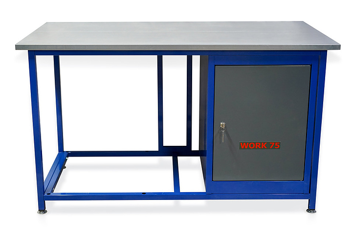 Верстак слесарный однотумбовый КМК ЗАВОД WORK75 WK1500(Т0) используется для столярных, слесарных, ремонтных и сборочных работ. Предназначен для мастерских, гаражей и производственных помещений, где требуется надёжная рабочая поверхность без лишних элементов. Раличие одной тумбы позволяет размещать верстак в небольших помещениях или использовать пространство под столешницей для хранения крупных инструментов. Каркас верстака WORK75 состоит из двух опор, верхней и нижней рам, а также рамки жесткости, изготовленных из стальной профильной трубы 30х30 мм. Каркас собирается с помощью стандартных болтов М8. Столешница изготовлена из фанеры 24 мм и закрыта стальным оцинкованным листом 1,2 мм. Верстаки Work75 поставляются в полностью разобранном виде, за исключением тумб, которые поставляются полностью собранными. Комплектация: