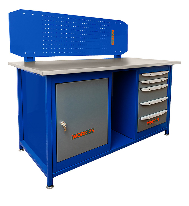 Верстак слесарный двухтумбовый КМК завод WORK75 WK1500(Т0-Т5) синий, серый