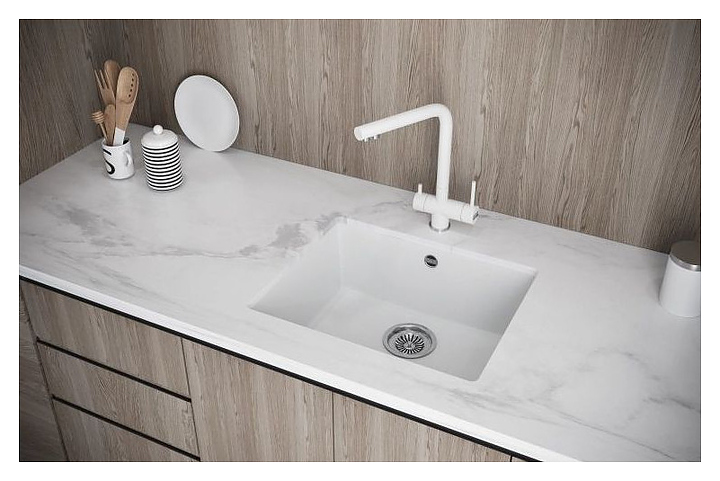 Кухонная мойка Kuchenstern UNDER 60 Ku-Granit 101JS10 предназначена для использования в кухонных помещениях, для рационального планирования рабочего места. Модель оснащена сливом-переливом, который помогает контролировать уровень воды в чаше и препятствует ее вытеканию через край. Мойка изготовлена из композитного материала последнего поколения (искусственного гранита), который легко чистится, гигиеничный и обладает высокой устойчивостью к царапинам, химическим веществам, а также к температурам до 280℃ и термическим ударам. Благодаря отсутствию пористости в композитном материале Ku-Granit, вы легко сможете удалить даже самые стойкие пятна с поверхности мойки. Комплектация: