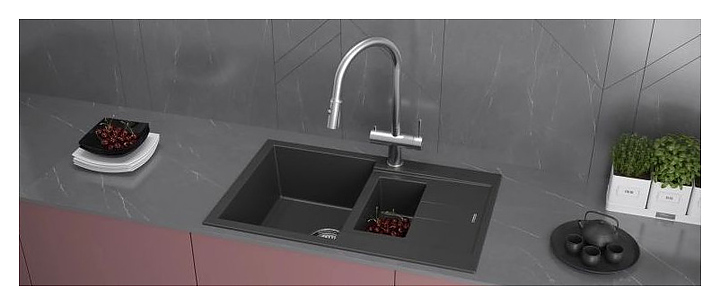 Кухонная мойка Kuchenstern OBEN 60 α-Granit 207BL20 используется в кухонных помещениях, для рационального планирования рабочего места. Модель оснащена крылом, на котором удобно располагать посуду, а также сливом-переливом, который помогает контролировать уровень воды в чаше и препятствует ее вытеканию через край. Мойка изготовлена из композитного материала последнего поколения (искусственного гранита), который легко чистится, гигиеничный и обладает высокой устойчивостью к царапинам, химическим веществам, а также к температурам до 280℃ и термическим ударам. Новый композитный материал не только прочен, но и приятен на ощупь, благодаря своей шелковистой поверхности. Комплектация:
