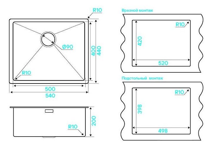 Кухонная мойка KUCHENSTERN 502GM50 KRAFT 60 AISI 304 540х440х200 мм вороненая сталь