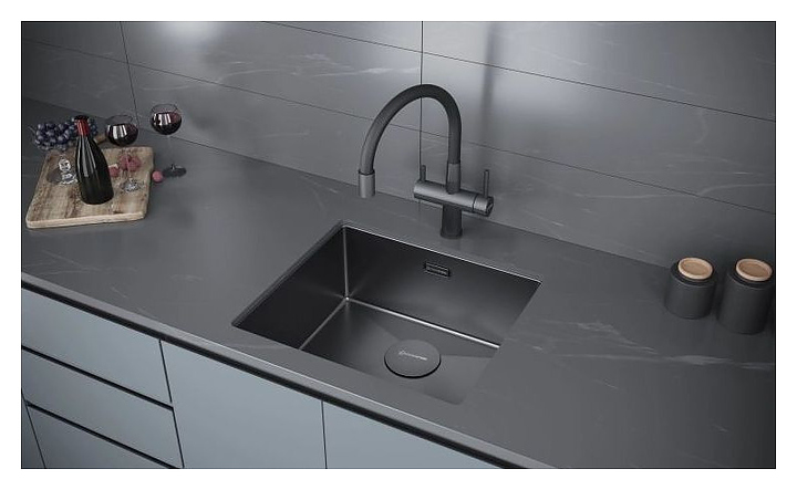 Кухонная мойка KUCHENSTERN 501GM50 KRAFT 50 AISI 304 490х440х200 мм вороненая сталь