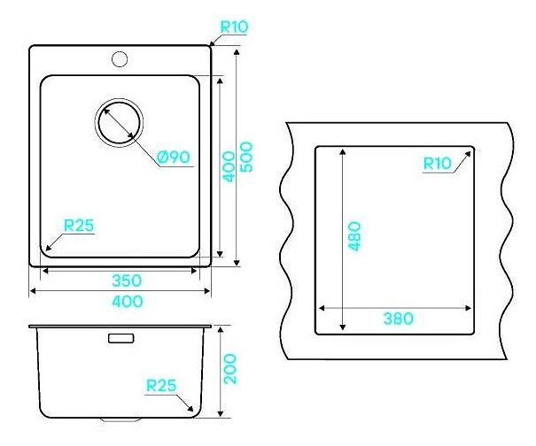Кухонная мойка KUCHENSTERN 555SS50 HERD 40 AISI 304 400х500х200 мм нержавеющая сталь