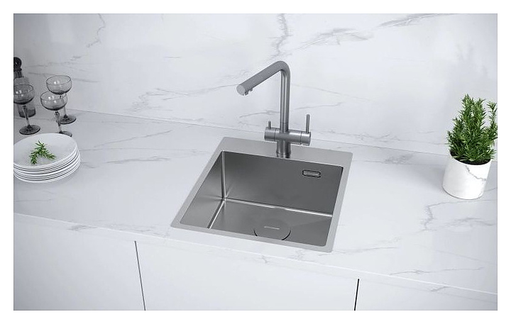 Кухонная мойка KUCHENSTERN 505GM50 WERK 45 AISI 304 440х510х200 мм вороненая сталь