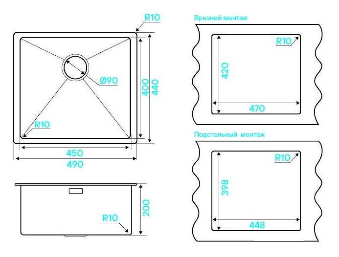 Кухонная мойка KUCHENSTERN 501SS50 KRAFT 50 AISI 304 490х440х200 мм нержавеющая сталь