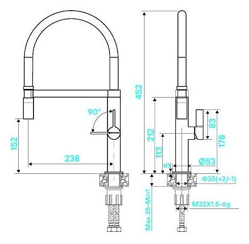 Смеситель для кухни KUCHENSTERN 405SS40 TURM-E нержавеющая сталь