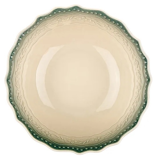 Салатник Kunstwerk Euphoria 17051F-XG/03035415 используется для подачи салатов в барах, ресторанах, на других предприятиях общественного питания и в домашних условиях. Коллекция вдохновлена умиротворяющей красотой цветущих садов, предметы со стилизованными под раскрывающиеся лепестки волнообразными кромками и тонким декором детализированними рельефными паттернами гармонично дополняют пространство в стиле рустик или минималистичный современный интерьер с элементами природы. Емкость круглой формы оснащена плавно расширенным кверху бортом. Изделие выполнено из высококачественного фарфора с глазурованной глянцевой поверхностью в комбинации бежевого и зеленого тонов. Особенности: