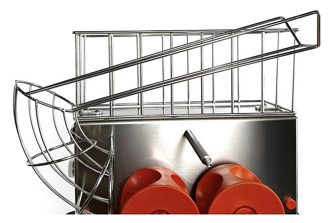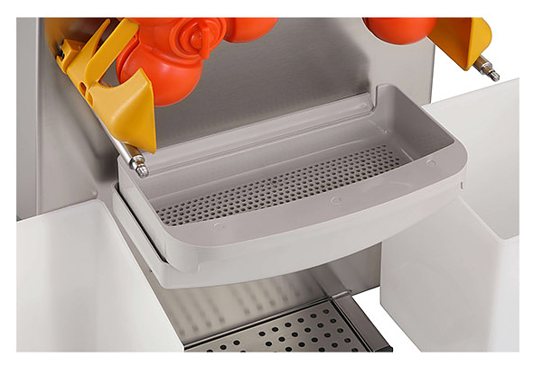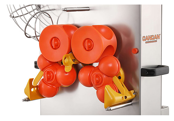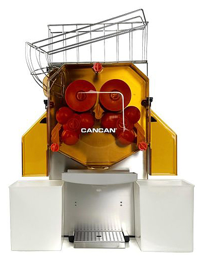 Автоматическая соковыжималка CanCan 28 служит для получения фруктового сока из апельсинов и используется в ресторанах, отелях, буфетах, торговых или развлекательных центрах и прочих общественных местах. Аппарат производит автоматическую нарезку фруктов и отжим сока, сводя к минимуму затраты ручного труда. Передняя крышка выполнена из поликарбоната, корпус, подстаканник, фильтр и нож из нержавеющей стали. Сочетание простоты управления, высокой производительности и безопасности обеспечивает эффективность использования данного оборудования. В комплект поставки входит две емкости для отходов вместимостью 15 кг. Особенности: