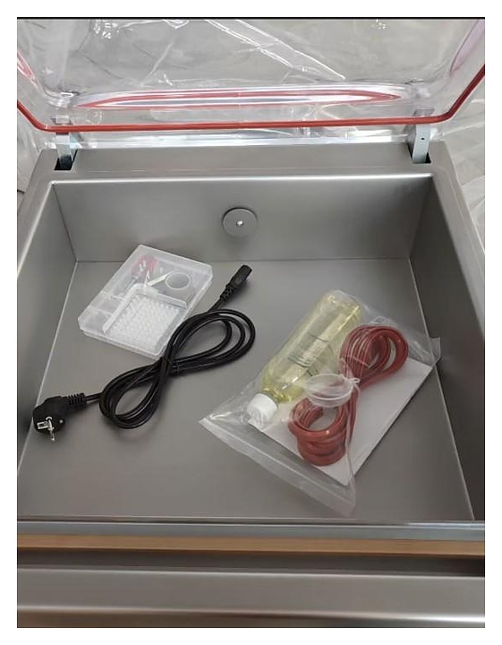Однокамерный вакуумный упаковщик INDOKOR IVP-500/T используется на предприятиях общественного питания и торговли для упаковки как пищевых, так и непищевых продуктов (электроники, полупроводников, фармацевтической продукции, текстиля и других товаров) в вакуумные пакеты. На шве можно пропечатывать дату, номер партии и другие символы с помощью специальной силиконовой вставки-клише. Модель оснащена вакуумметром и светодиодными индикаторами рабочего процесса. Корпус и камера выполнены из нержавеющей стали, прозрачная крышка - из специального стекла. Комплектация: