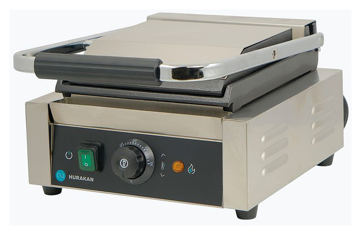 Прижимной гриль Hurakan HKN-PE22FT предназначен для обжаривания стейков и сосисок, приготовления сэндвичей, полуфабрикатов, подогрева булочек, гамбургеров, хот-догов на предприятиях общественного питания и торговли. Высокая скорость приготовления достигается благодаря встроенным в обе части аппарата тепловым элементам, которые плотно прилегают к продукту. Модель оснащена регулируемым термостатом, индикатором нагрева и лотком для сбора жира. Корпус выполнен из нержавеющей стали. Видео