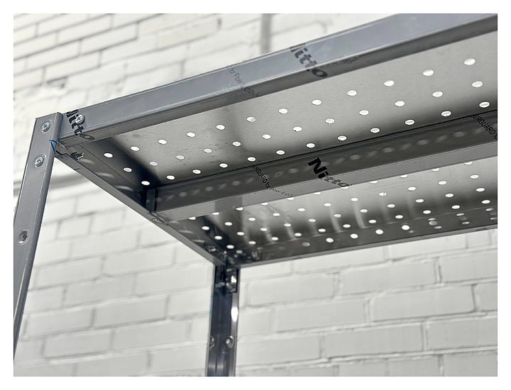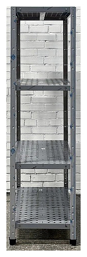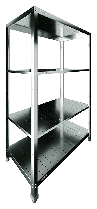 Кухонный стеллаж Restoinox СТПП-13/6-ЭН предназначен для хранения посуды, инвентаря и продуктов, не требующих специального температурного режима, на предприятиях общественного питания и торговли. Модель оснащена 4 регулируемыми по высоте перфорированными полками и ребрами жесткости. Разборный каркас выполнен из уголка 40х40 мм нержавеющей стали AISI 430, ребра жесткости и полки - из нержавеющей стали AISI 430. Дополнительные характеристики: