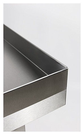 Производственный островной стол Restoinox СП-17/6-3БП-ЭН серии 600 предназначен для обработки продуктов питания, раскатки теста и хранения кухонного инвентаря, также для размещения малогабаритного оборудования на предприятиях общественного питания и торговли. Модель оснащена бортами с 3 сторон и сплошной полкой, усиленной ребром жесткости из нержавеющей стали. Ножки выполнены из уголка 40х40 мм из нержавеющей стали Aisi 430 с пуклевкой, рабочая поверхность и полка - из нержавеющей стали Aisi 430, столешница усилена листом ЛДСП. Особенности:
